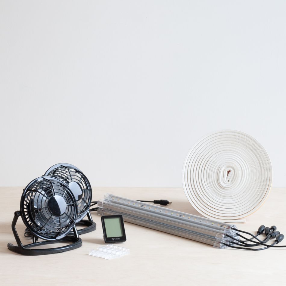 - 1 x tochtstrips: om de kast goed af te sluiten. Dit helpt om de temperatuur en luchtvochtigheid gelijkmatig te houden.