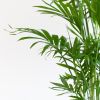 De Palm Plantenbox bestaat uit een set van 4 palm planten: de luchtzuiverende Areca lutescens, de robuuste Cycas revoluta en tweemaal de sierlijke Chamaedorea elegans. Samen geven deze planten jouw interieur een rustgevende, groene uitstraling. De palm planten vormen een mooi geheel, maar zijn tegelijkertijd ook divers. De twee Chamaedorea planten zijn wat kleiner van stuk, met potmaat 12 en een hoogte van ca. 35 cm. Deze kamerplanten kunnen bijvoorbeeld mooi samen op tafel staan, of op twee kleine bijzettafeltjes. De Areca lutescens is wat groter van stuk, met potmaat 17 en een hoogte van ca. 70 cm. Deze kamerplant met veerachtige blaadjes springt mooi in het oog, en komt goed tot zijn recht op een hoek- of plantentafel. De Cycas revoluta oogt wat robuuster, met een dikke stam en harde, breed groeiende blaadjes. De Cycas is een blijvertje. De plant is ca. +/- 299 – 359 miljoen jaar geleden ontstaan; een van de oudste planten die momenteel als kamerplant bestaan. Als kamerplant kan de Cycas (met de juiste verzorging) wel 100 jaar oud worden, en met generaties door worden gegeven. Let op! - De Cycas is matig giftig bij inname. Kijk met deze plant dus uit als je huisdieren en / of kleine kinderen hebt. De Areca en Chamaedorea zijn niet giftig. Lichtbehoefte - Zet de palmen op lichte plaatsen zonder direct zonlicht. Alleen de Cycas kan eventueel op een zonnig plekje staan, zolang je de kamerplant hier geleidelijk aan laat wennen. Water geven Cycas - Geef matig water en laat de potgrond tussen gietbeurten opdrogen. Water geven Areca en Chamaedorea - Houd de potgrond altijd vochtig door regelmatig kleine hoeveelheden water te geven. Zorg bij alle planten voor een goede afwatering, zodat er geen laagje water in de pot komt te staan. Deze combideal wordt geleverd exclusief sierpotten. Onze sierpottencollectie vind je hier!
