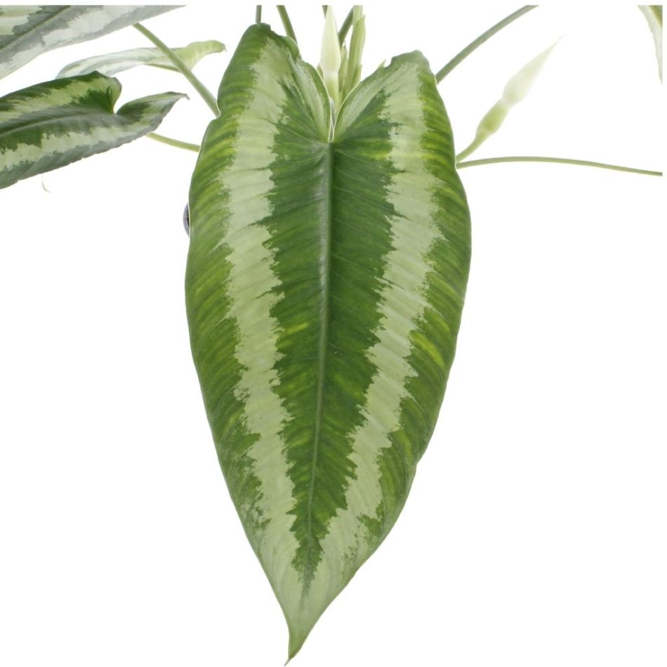 Wat de Schismatoglottis Wallichii zo’n bijzondere kamerplant maakt, is niet alleen het feit dat hij zeldzaam is. Een bladtekening zoals deze kom je niet vaak tegen. De lichte, zilvergroene stroken lijken haast met een penseeltje te zijn aangebracht. Hoewel de Schismatoglottis geen snelle groeier is, kan het wel een bijzonder volle plant worden.